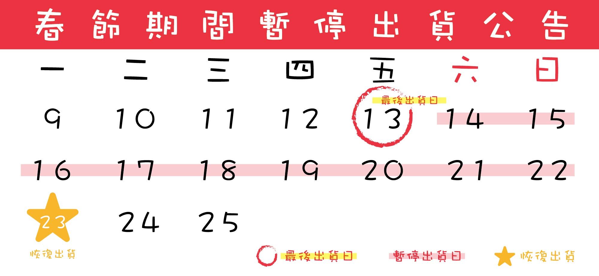 因應春節連假調整出貨服務: 🐴最後出貨日:2/13(五) 🐴恢復出貨日:2/23(一)! 請家長們檢查家中庫存提前規劃囤量 讓毛孩也有豐盛的年節喔~