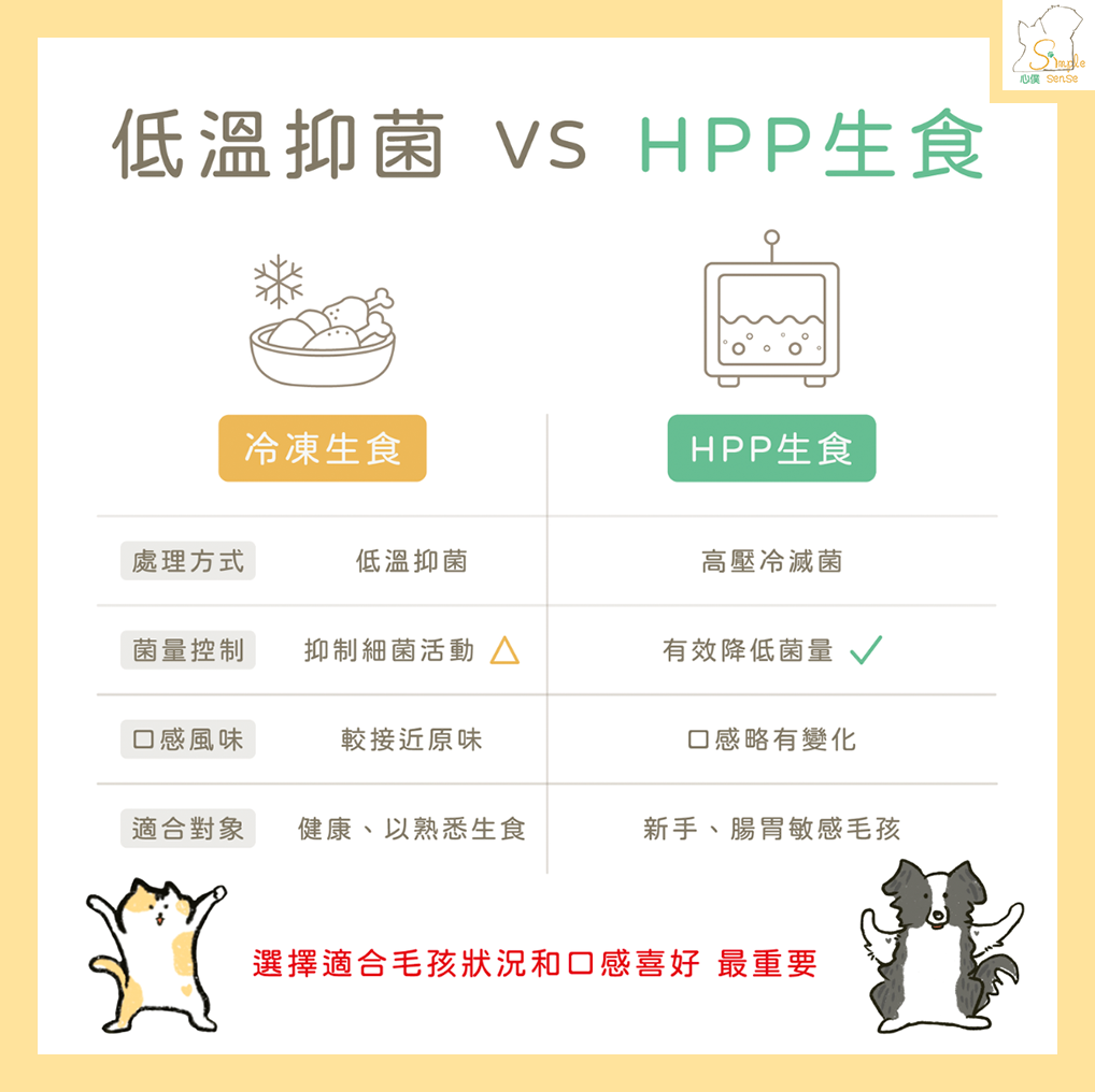 簡介:當你開始研究毛孩生食,一定很快就會遇到兩個名詞:冷凍生食,還有 HPP 生食。有人說 HPP 比較安全,也有人擔心冷凍生食風險較高,但事實真的只有一種選擇嗎?這篇文章從製程、風險管理、口感差異與毛孩實際反應出發,說清楚冷凍生食與 HPP 生食各自在做什麼、差在哪裡,以及哪一種比較適合不同狀況的毛孩與家庭。如果你正在猶豫該怎麼選,這篇文章陪你一起釐清。