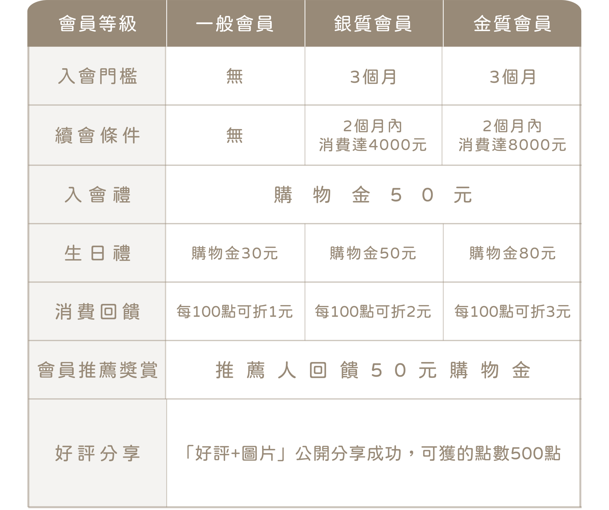 • 升等資格:兩個月內消費累計滿NT$4,000元(含) 即可升等為銀